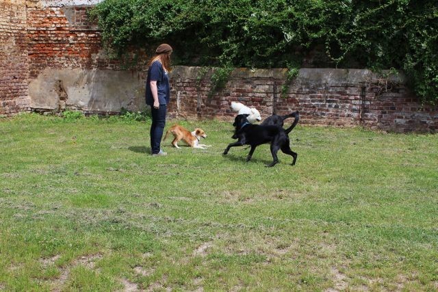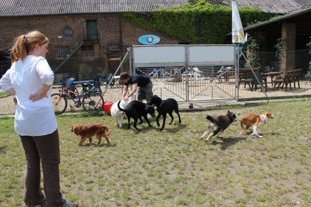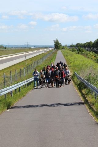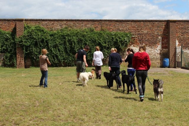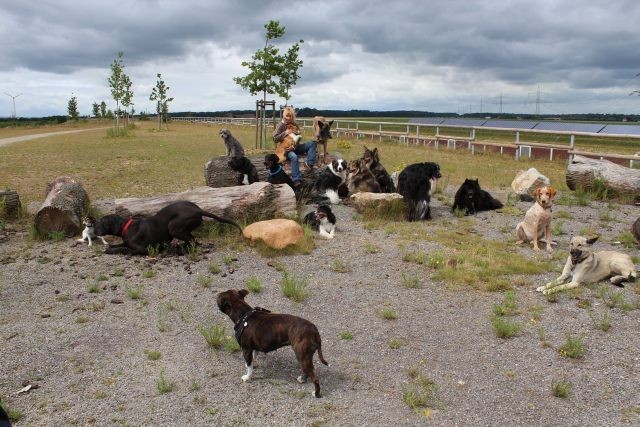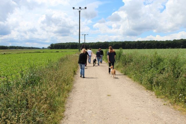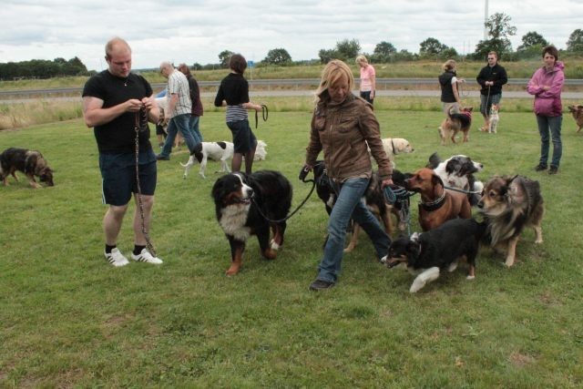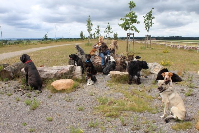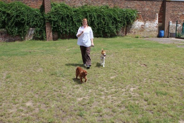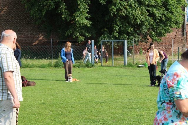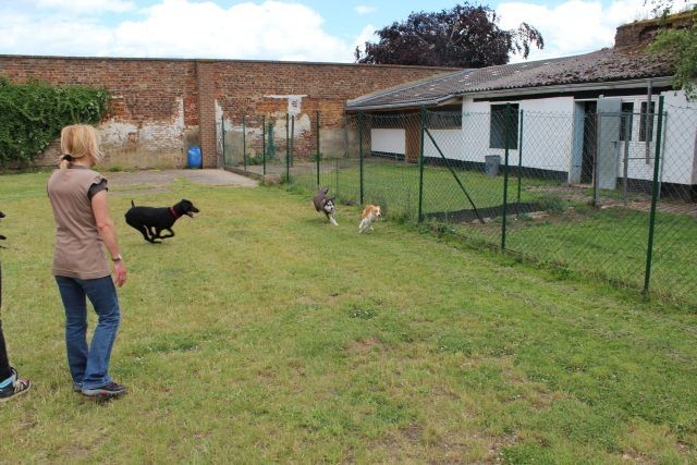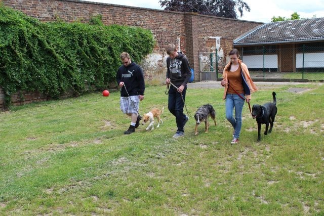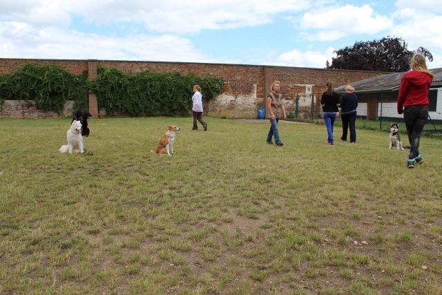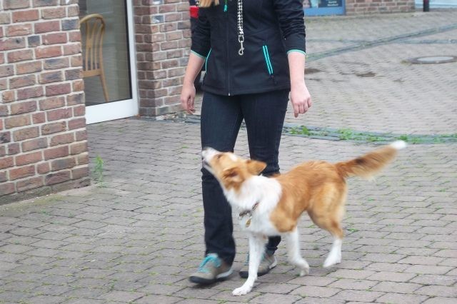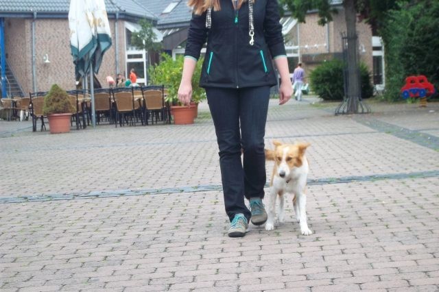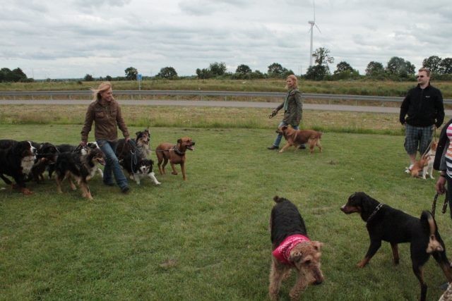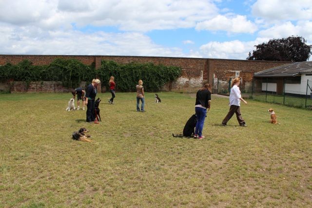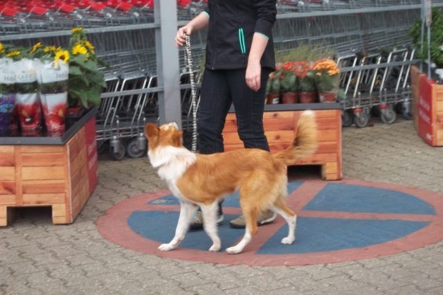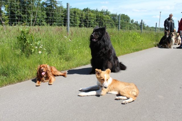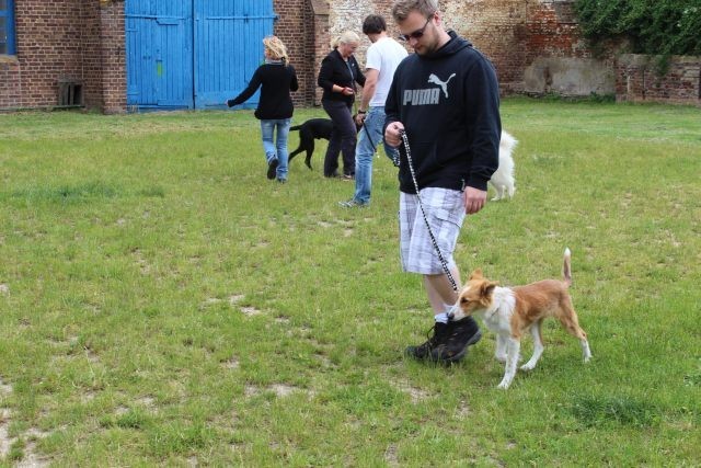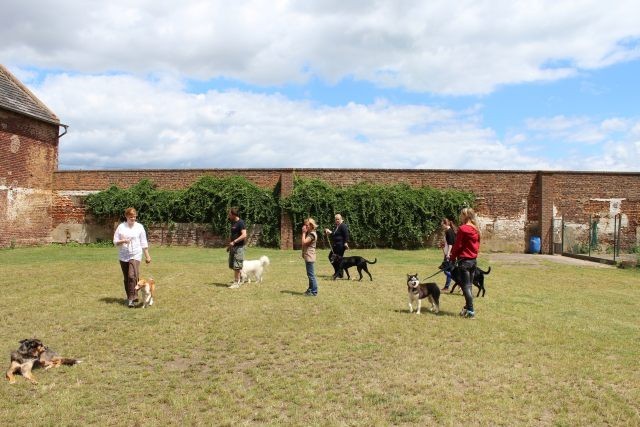 Weiterhin findet das Training in der Hundeschule in der Großgruppe statt, um Mille bei großer Ablenkung durch freilaufende Hunde, viele Menschen, Radfahrer etc. zu stabilisieren und den Gehorsam zu festigen.