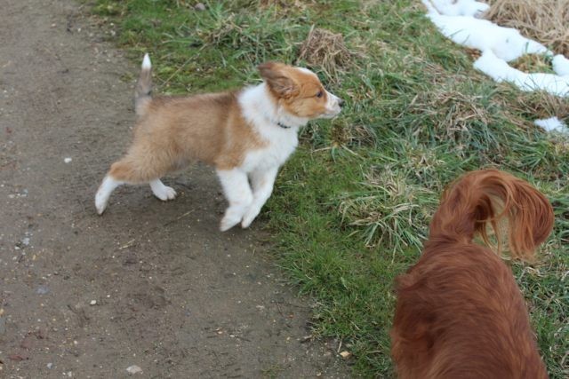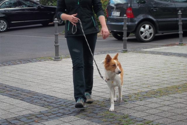 Milli hat die geforderten Prüfungselemente schon recht gut und zügig ausgeführt. Etwas nervös aber trotzdem im Gehorsam bleibend, erwies sie sich am Straßenrand bei vorbeifahrenden Autos. In den nächsten Wochen soll sie deshalb noch mehr an den Straßenverkehr gewöhnt werden. Die anstehende Wochenendreise nach Berlin kommt daher zur richtigen Zeit.
