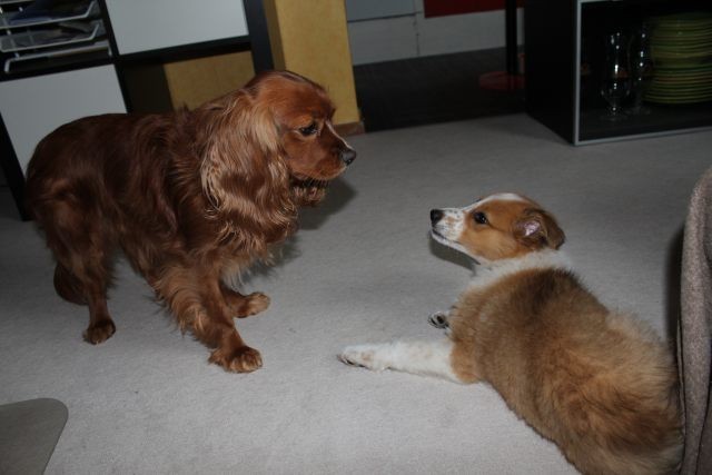 Wenn Hunde ein Fehlverhalten zeigen, hat es nicht unbedingt ausschließlich etwas mit fehlender Erziehung zu tun. Viele Rassen sind mit einer angeborenen Triebveranlagung ausgestattet, die für den normalen Hundehalter im Alltag schwer zu Händeln sind. Eine Pauschallösung für die Korrektur bestimmter Fehlverhalten ist demzufolge kaum anzubieten, sonders richtet sich ganz individuell nach Verhalten des jeweiligen Hundes. Bei reaktionsschnellen und Futterverteidigenden Hunden wie Milli wird zur positiven Konditionierung, ihr ein gezügeltes Verhalten vor und während der Futteraufnahme beizubringen, in der kommenden Zeit auch ein hoher Praxisanteil mit Korrekturen notwendig werden. Für diese Maßnahme besteht die absolute Notwendigkeit, um der Futterverteidigung gegenüber „Vince“ dem tauben Ersthund und gegenüber Menschen vorzubeugen.