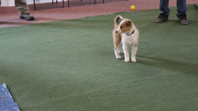 Die Begleithundeausbildung in der Junghundgruppe scheint Milli offensichtlich großen Spaß zu machen. Sie ist sehr aufmerksam und hat Lust Neues zu lernen. Inhalte dieser Ausbildung sind u.a., Einhalten aller Hörzeichen ohne Wiederholungen und unter Ablenkung, soziales Spielverhalten gegenüber Artgenossen und Rückruftraining aus dem Spiel.