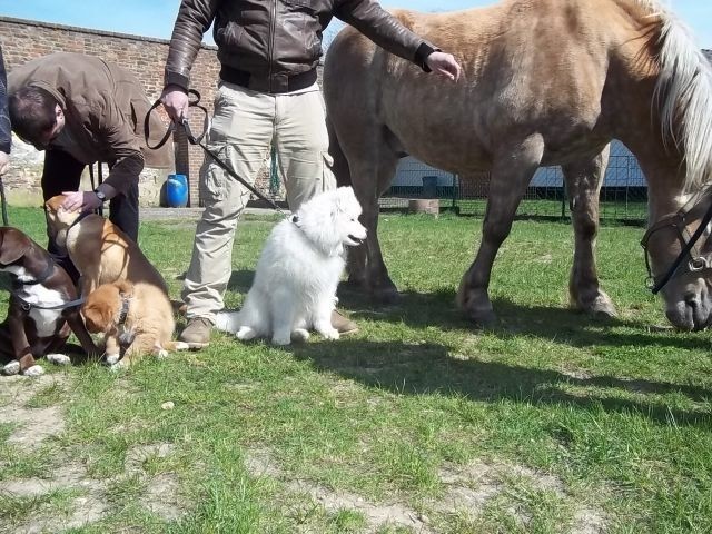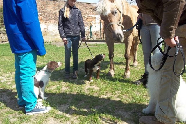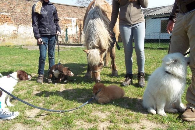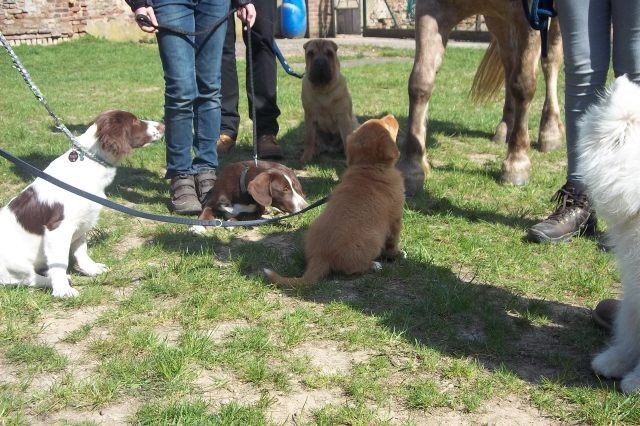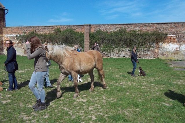 Leider konnte Milli an diesem Wochenende nicht an der Welpenstunde teilnehmen. Ihre Kollegen wurden mit etwas bislang Unbekanntes vertraut gemacht, mit einem Pferd.