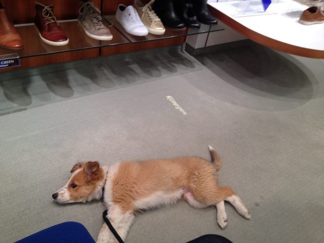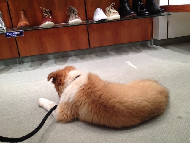 Die Besitzer nehmen sich sehr viel Zeit für die Prägung von Milli. Heute steht ein Stadtausflug mit vielen unbekannten Außeneinflüssen auf dem Programm. Ganz ehrlich, wer gerät beim Anblick eines Welpen nicht in Entzücken. Milli lernte bei diesem Ausflug zwei Kategorien von Menschen kennen. Die eine, die man förmlich von ihr herunterreißen musste, die andere, die sehr erfreut aber dennoch ruhig und diszipliniert mit einem Lächeln an ihr vorbei gingen. Um unnötigen Diskussionen aus dem Wege zu gehen und Milli unnötige Maßregelungen zu ersparen, tat man das was für einen Welpen das Beste ist, man begab sich in eine etwas ruhigeren Atmosphäre.