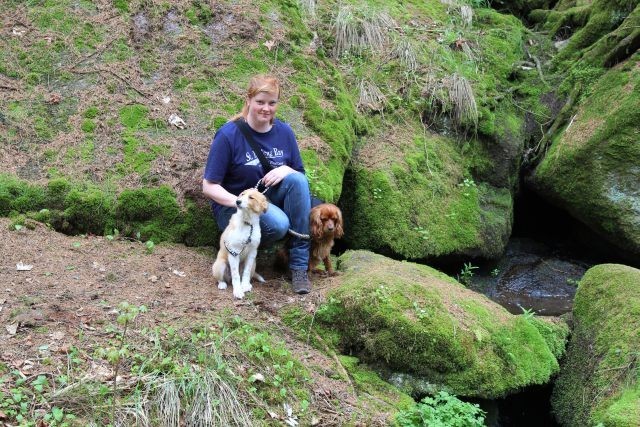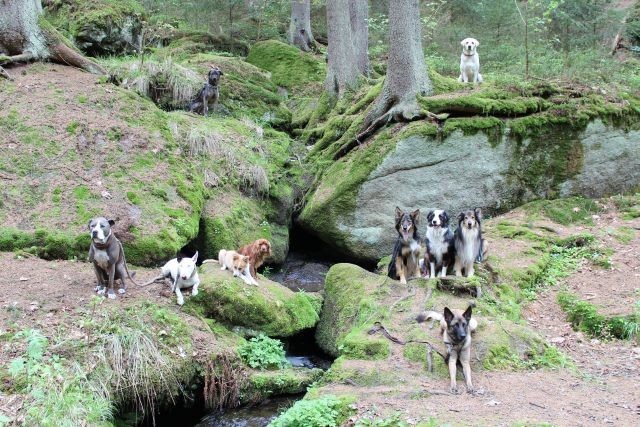 Milli und Vince nahmen an der Wanderwoche in der Oberpfalz teil, ein jährliches Event der Hundeschule. In einer Gruppe von insgesamt 14 Hunden, hieß es nun die Schönheiten der Natur in dieser Region zu erkunden. Die Tagesetappen hat Milli locker geschafft und auch das einzigartige Felsenlabyrinth auf der Luisenburg konnte sie sicher bewältigen. Die Landschaft wird bestimmt durch riesige, 300 Millionen Jahre alte Granitsteinblöcke. Der Weg zum Gipfel führt durch niedrige Felsblöcke, über Treppen und durch Höhlen. Für Hund und Halter eine sehr abenteuerliche Tour.