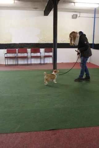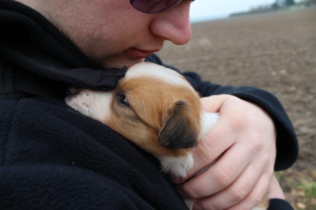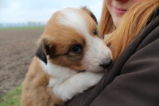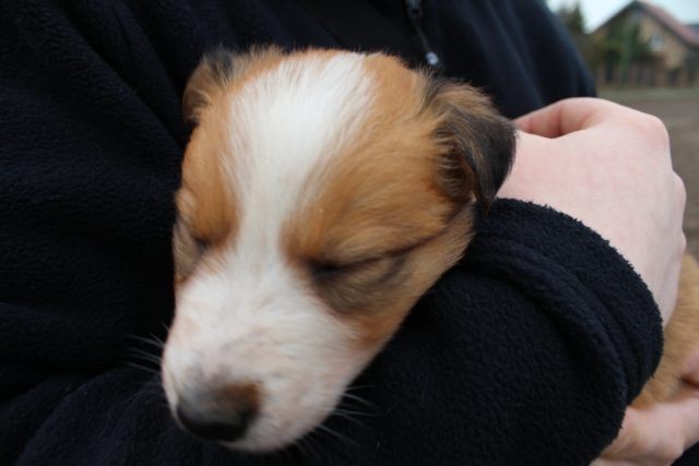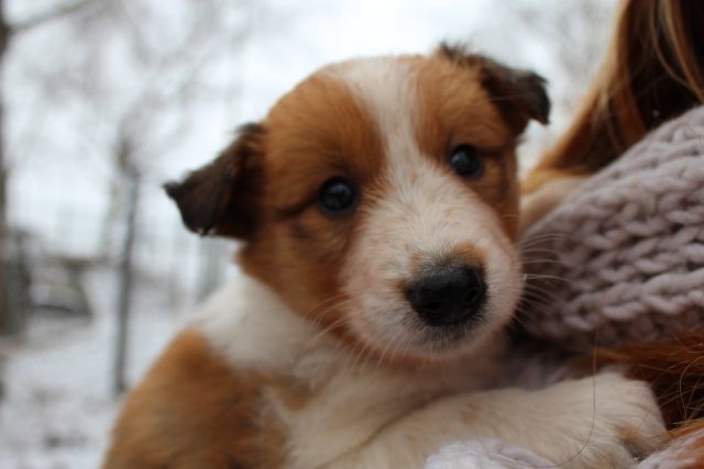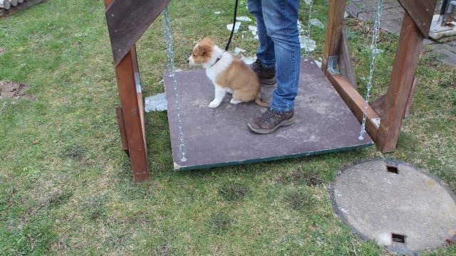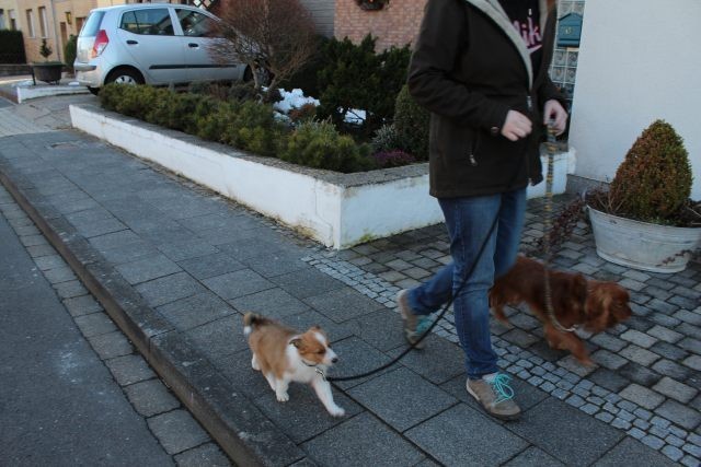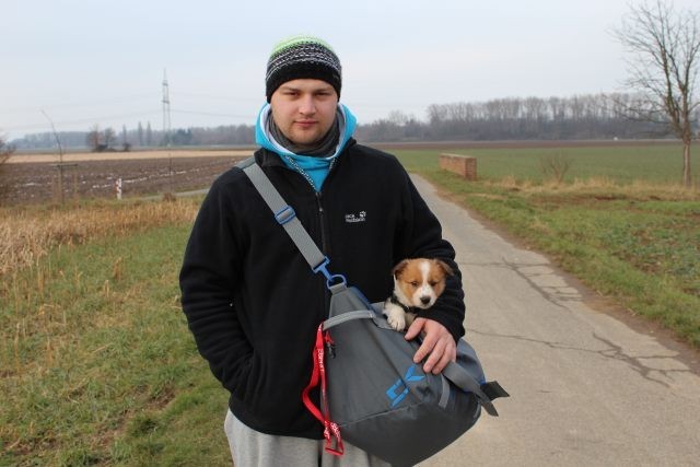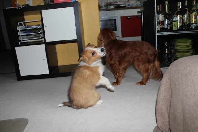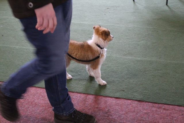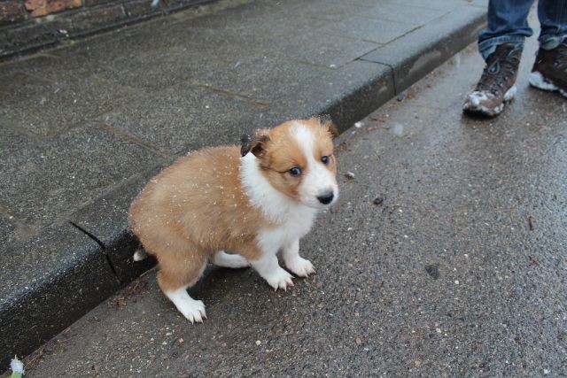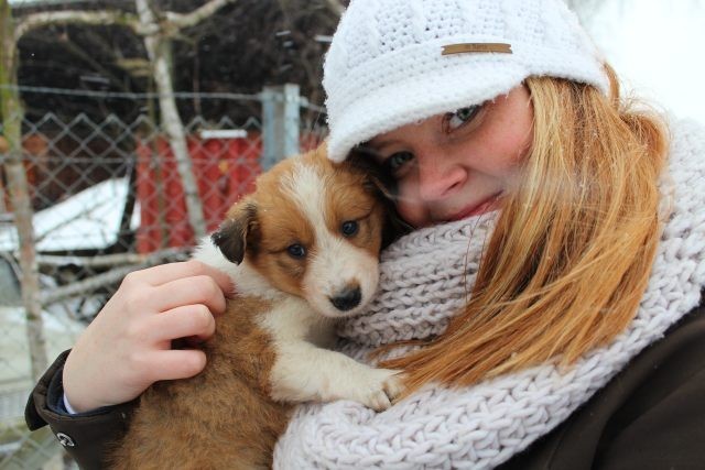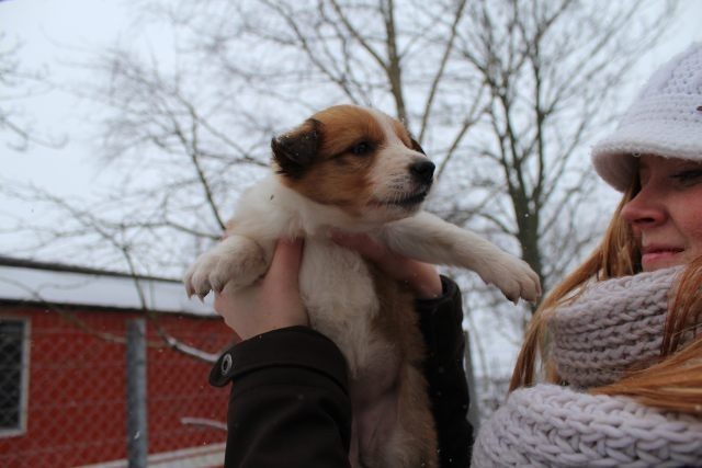 Milli ist fünf Wochen alt und hat ihre zukünftigen Besitzer wiedererkannt. Durch die frostigen Temperaturen war der Aufenthalt im Freien sehr kurz.