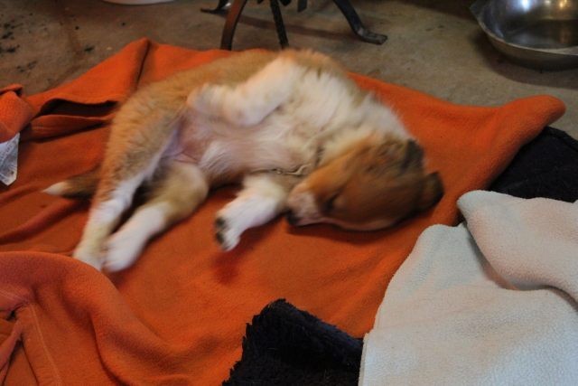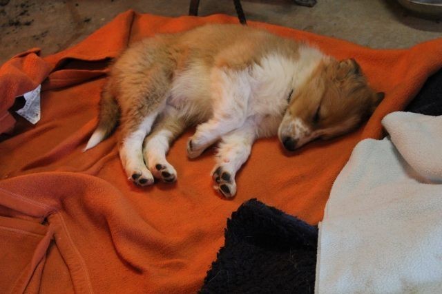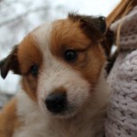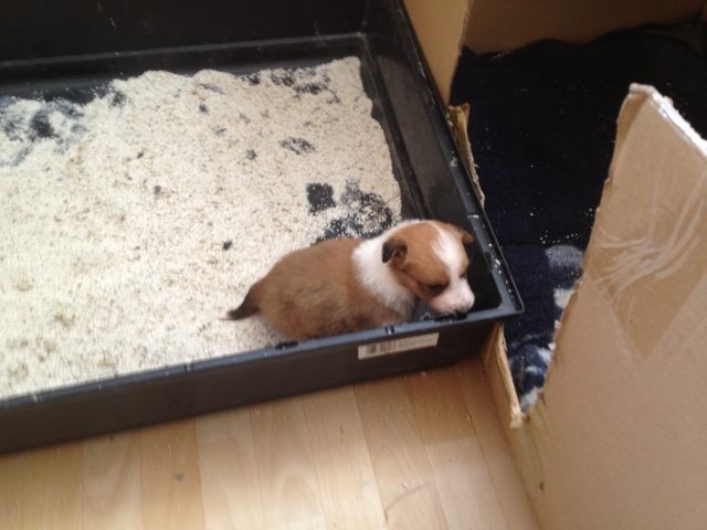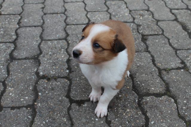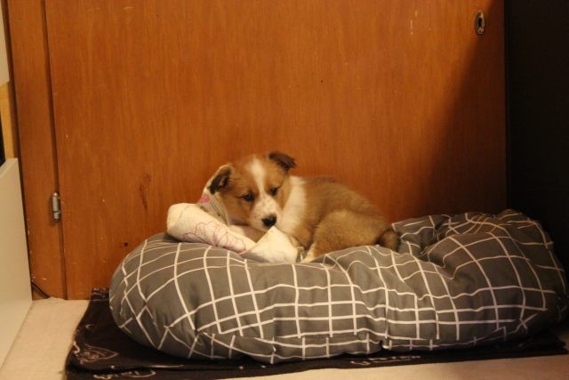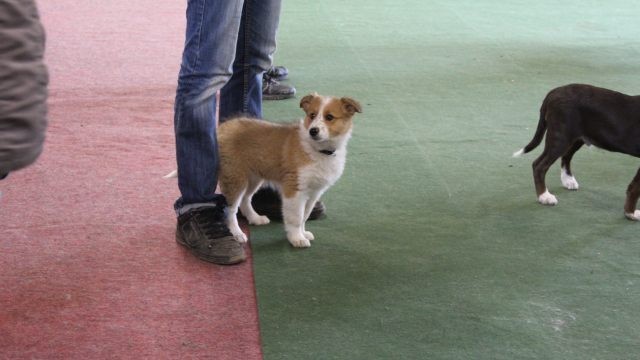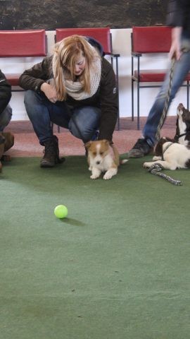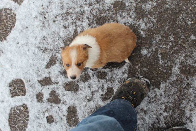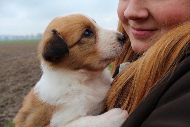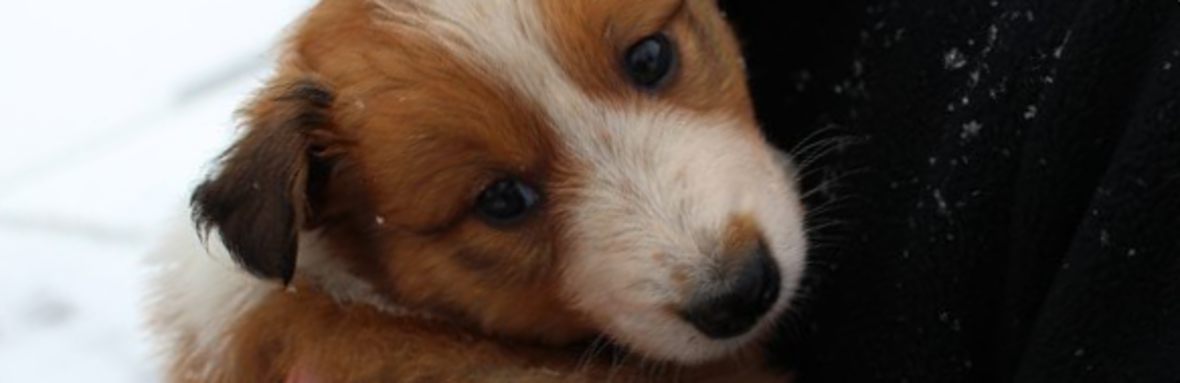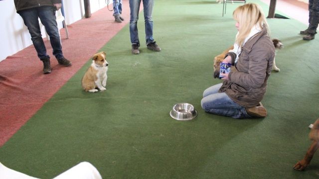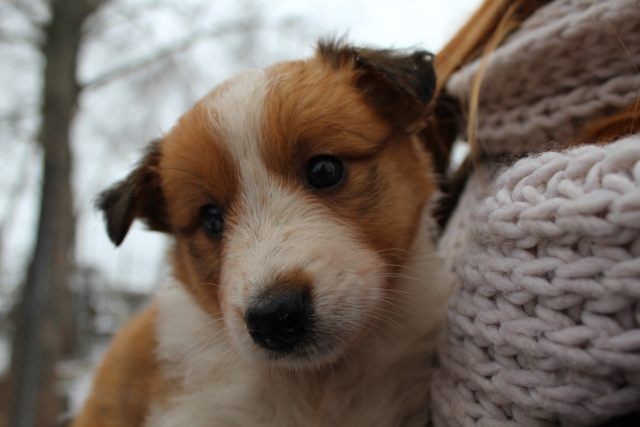 Milli ist fünf Wochen alt und hat ihre zukünftigen Besitzer wiedererkannt. Durch die frostigen Temperaturen war der Aufenthalt im Freien sehr kurz.