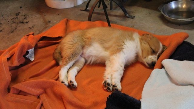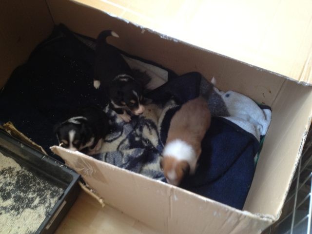 Der Wurf ist erst vier Wochen alt. Der Ersthund der Familie ist taub und soll nicht überfordert werden. Man hat sich für Milli entschieden, da sie die ruhigste aus dem Wurf ist.