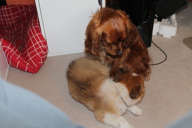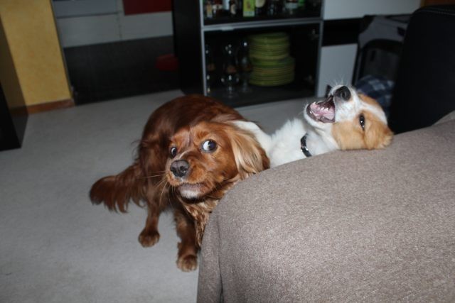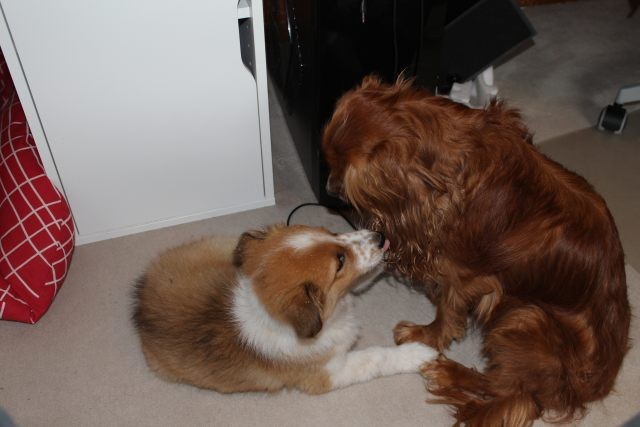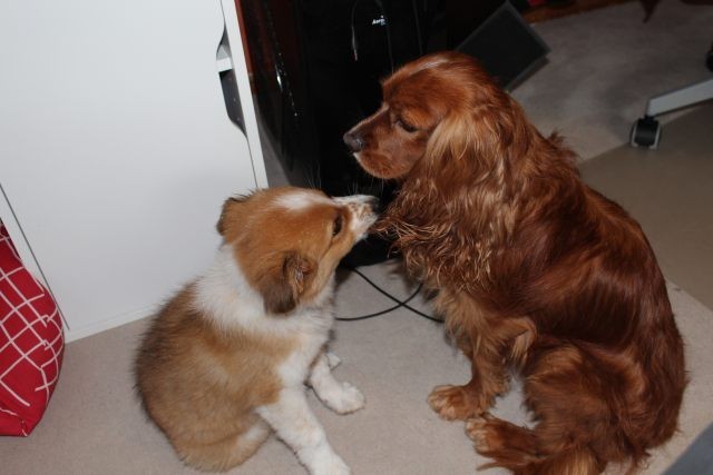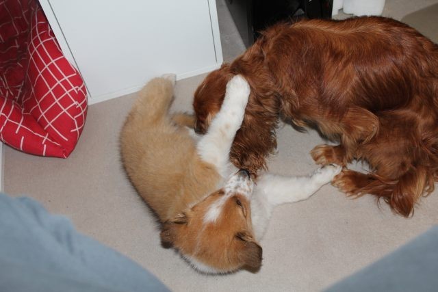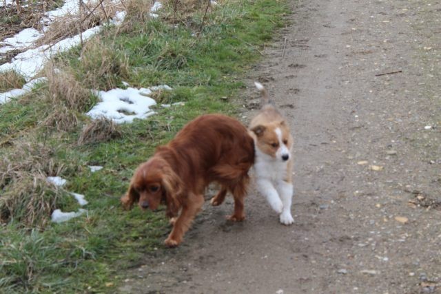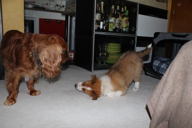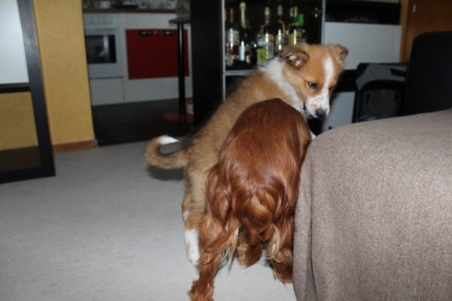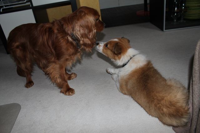 Alles ist organisiert. Drei Wochen Urlaub, Utensilien angeschafft, Tagesabläufe organisiert. Obwohl Milli bereits mit 6,5 Wochen abgegeben wurde, braucht dies nicht unbedingt zu einem Problem werden. Milli ist so wie man sich einen Welpen vorstellt, aufgeweckt, fröhlich und…..selbstbewusst. Die Zusammenführung mit dem vier Jahre alten tauben Hund „Vince“ war kein Problem. Milli muss aber auch lernen, dass ein erwachsener Hund das Recht auf Ruhephasen hat und dass sein Familienleben weitgehend beständig bleiben muss. Vince muss die Nr. 1 bleiben, sonst würde er das Vertrauen zu seinen Leuten verlieren.
