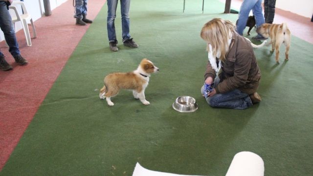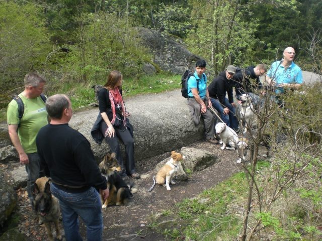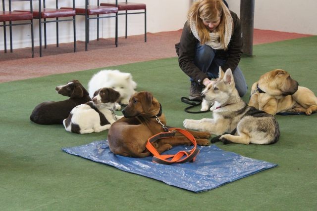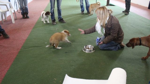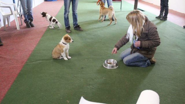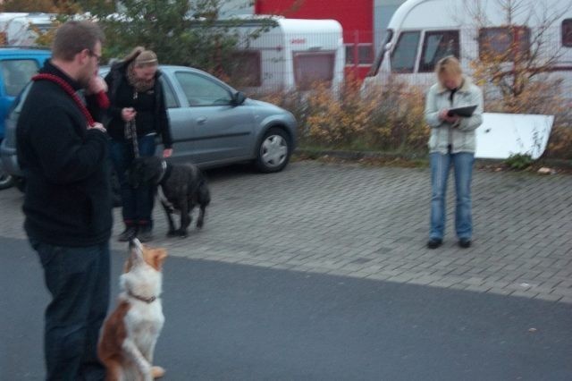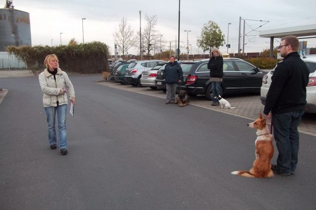 Die Gehorsamsübungen werden nur kurz eingebaut aber dafür konsequent durchgesetzt. Sitz, bleib Sitz, bleib Platz unter Ablenkung und erste Übungen zur Leinenführigkeit.