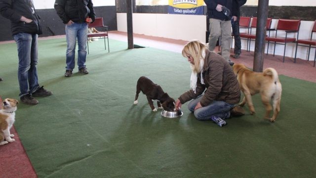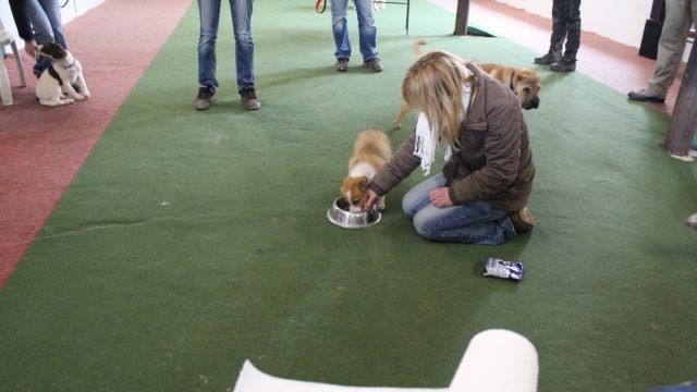 Ein erstes Problem hat sich gezeigt. Die Halterin berichtete, dass Milli wie eine kleine Wahnsinnige zum Futter stürmt, so gierig frisst so dass die Futterbrocken herausfliegen, steif wird wenn die Hand dazu kommt und sogar danach schnappt. Zeigt sich ein solches Verhalten bereits jetzt schon, dürfen die Korrekturmaßnahmen nicht auf die lange Bank geschoben werden. Thema in der heutigen Stunde, Ablauf einer Fütterung von A bis Z.
