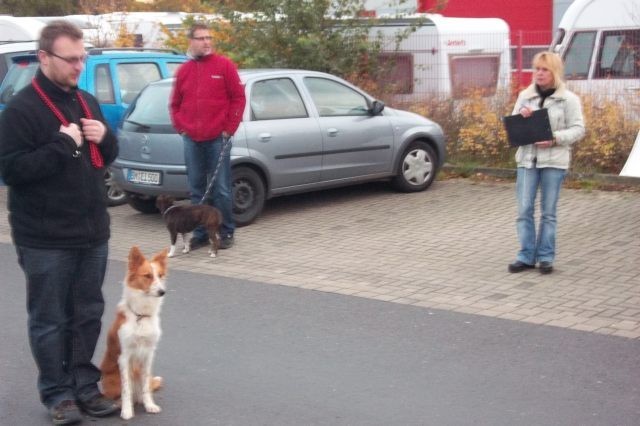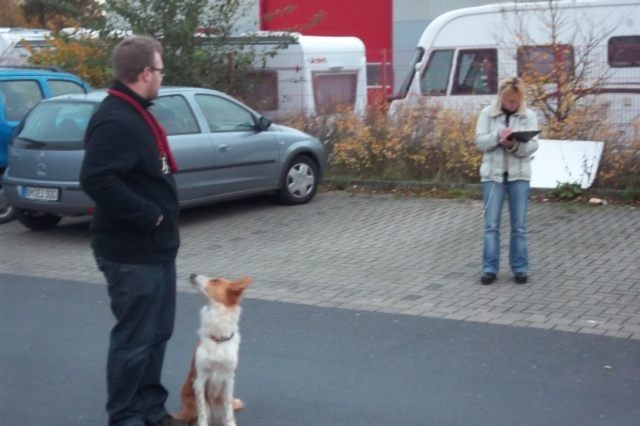 Die Prüfung fand an einem Samstagnachmittag in Kerpen-Buir im Umfeld des Bahnhofes statt, wo mit regem Treiben zu rechnen war. Die verkehrssichere Begleithundeprüfung ist eine freiwillige Wesens- und Zuverlässigkeitsprüfung für Familienhunde. Prüfungsleiterin war Gabi Heck, die Milli und ihre Besitzer von der achten Lebenswoche des Hundes an betreut hat. Gabi Heck ist ausgebildete Kynopädagogin und zertifizierte Prüfungsrichterin der VB-Prüfung. Ihr Schwerpunkt liegt in der Arbeit mit problematischen Hunden und in der Hundehalterschulung. Die Hundeschule Heck ist als sachverständige Stelle i.S.v. § 10Abs. 2LHundG NRW anerkannt.